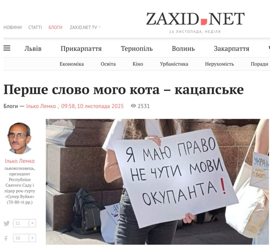 Во Львове развернулась неожиданная «кошачья дискуссия», затронувшая… «русскоязычность хвостатых». Украинский публицист Илько Лемко в своей колонке для издания с говорящим названием «Захід» пожаловался на рекламный слоган «Первое слово моего кота —...