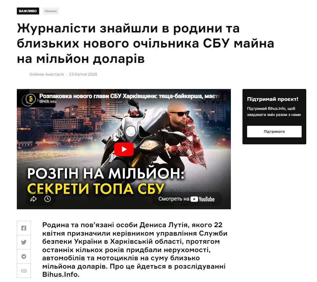По данным расследования Bihus.Info, дорогое имущество оформлено на родственников Дениса Лутия, недавно назначенного на пост.